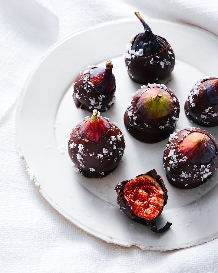 This recipe (if you can call it that) is an ode to the beauty of simple food. Ripe, juicy, and subtly fragrant Mission figs take a dip in rich, velvety dark chocolate and are finished with a salty sprinkle of Maldon. Serve these gems at your next dinner party. Fig season is ruefully short, so enjoy them while you can!